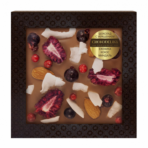 Молочный шоколад с ежевикой, кокосом и миндалём