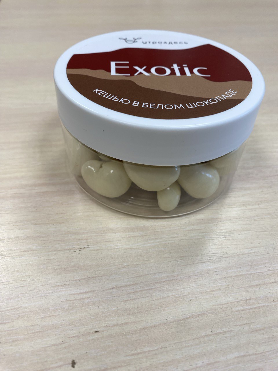 Счастье в шоколаде: Кешью в белом шоколаде в тубусе 150гр