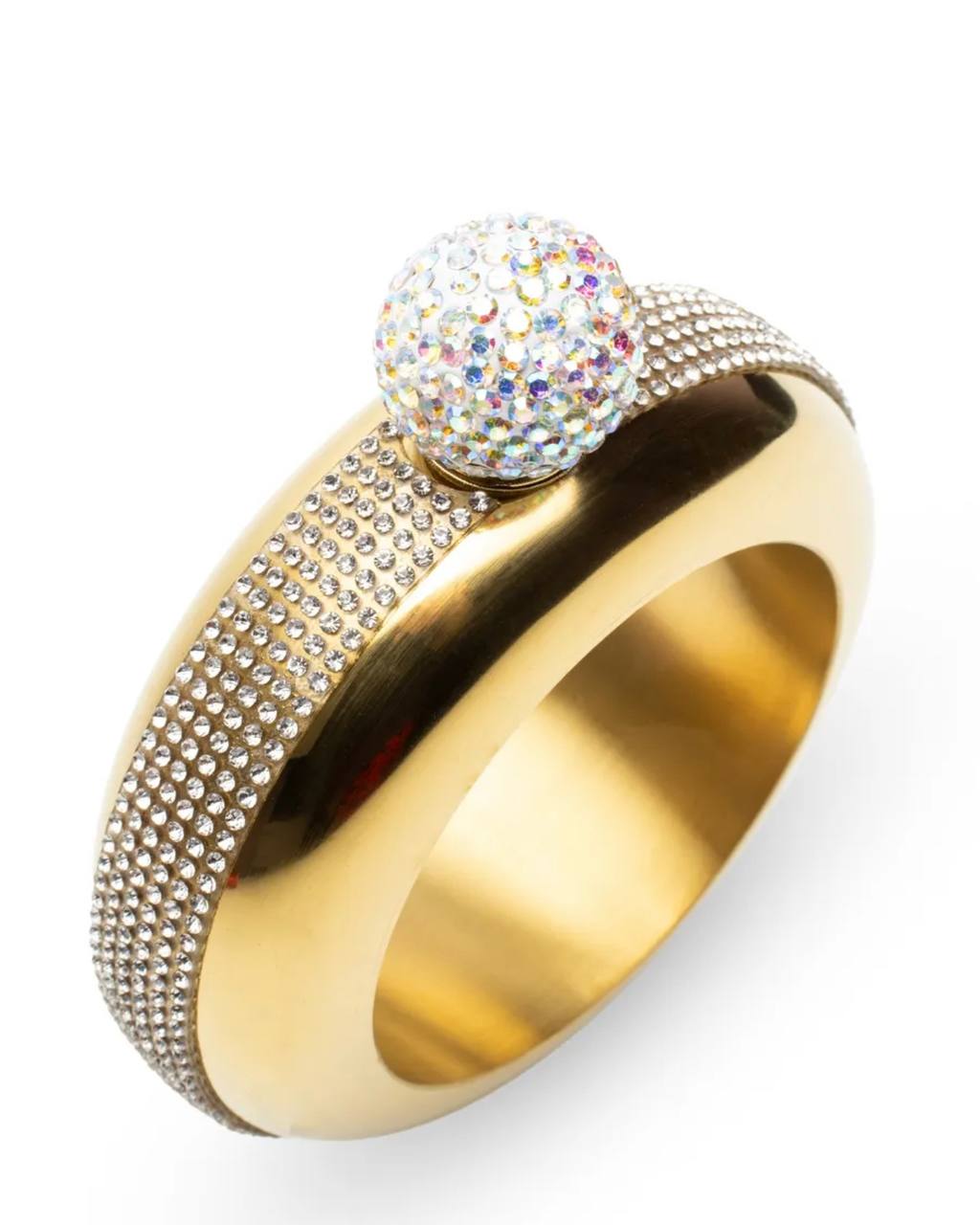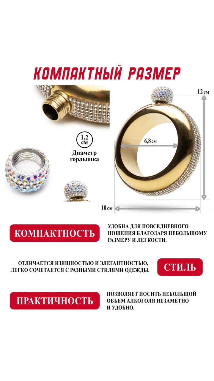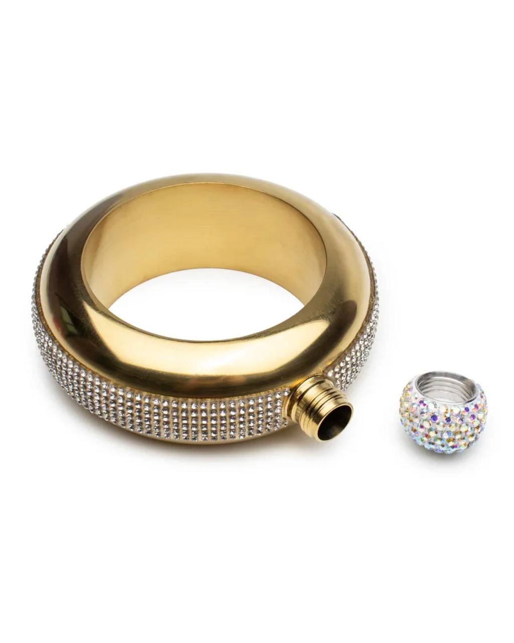 Фляжка , в виде браслета кольца со стразами , золотая