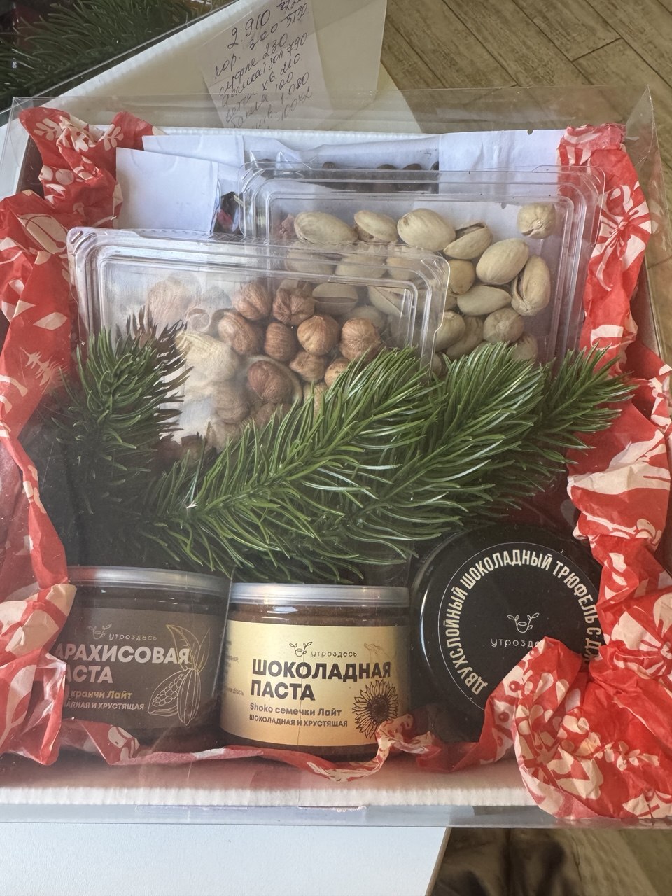 Россыпь отборных орехов: миндаль, фундук, кешью, фисташка | Обволакивающий трюфель с джином | Полезные ореховые пасты без сахара | Ароматный кофе | Чай с сибирским характером «Таёжный» | Новогодний декор | Подарочная упаковка
