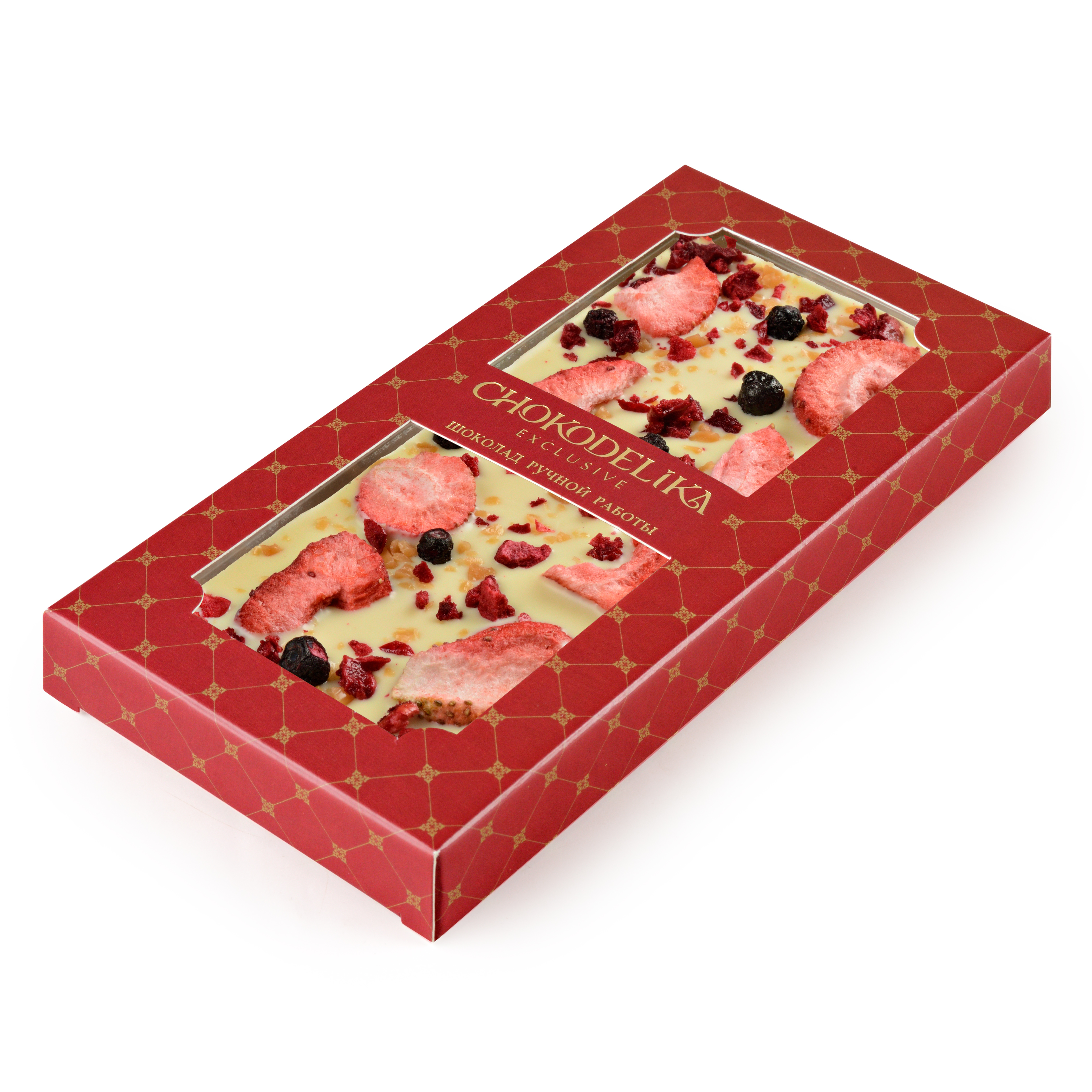 Шоколад белый с украшением «Клубника, вишня, карамель»