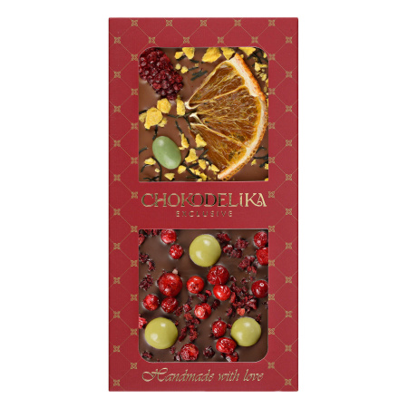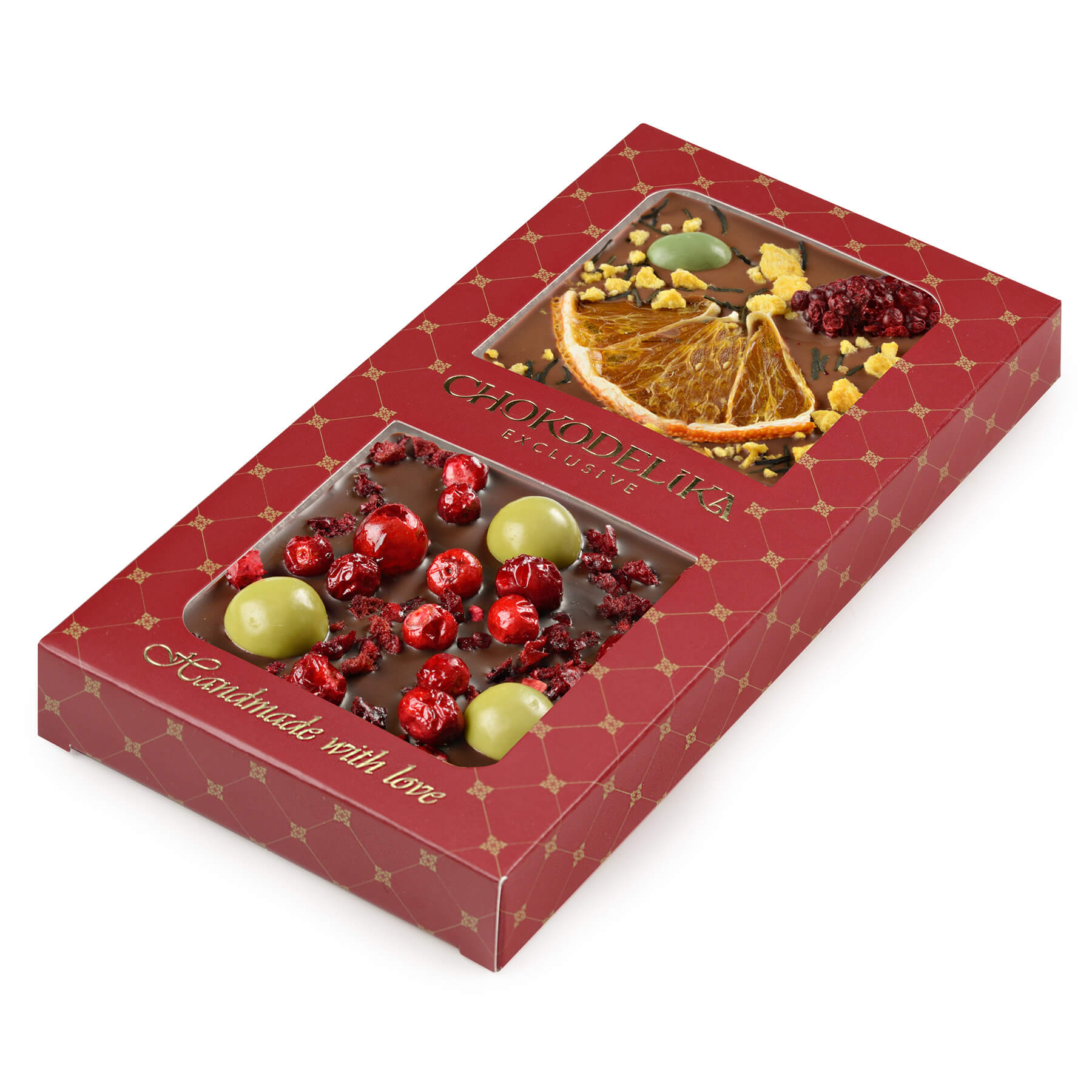 1. Шоколад молочный с украшением «Ежевика и апельсин»